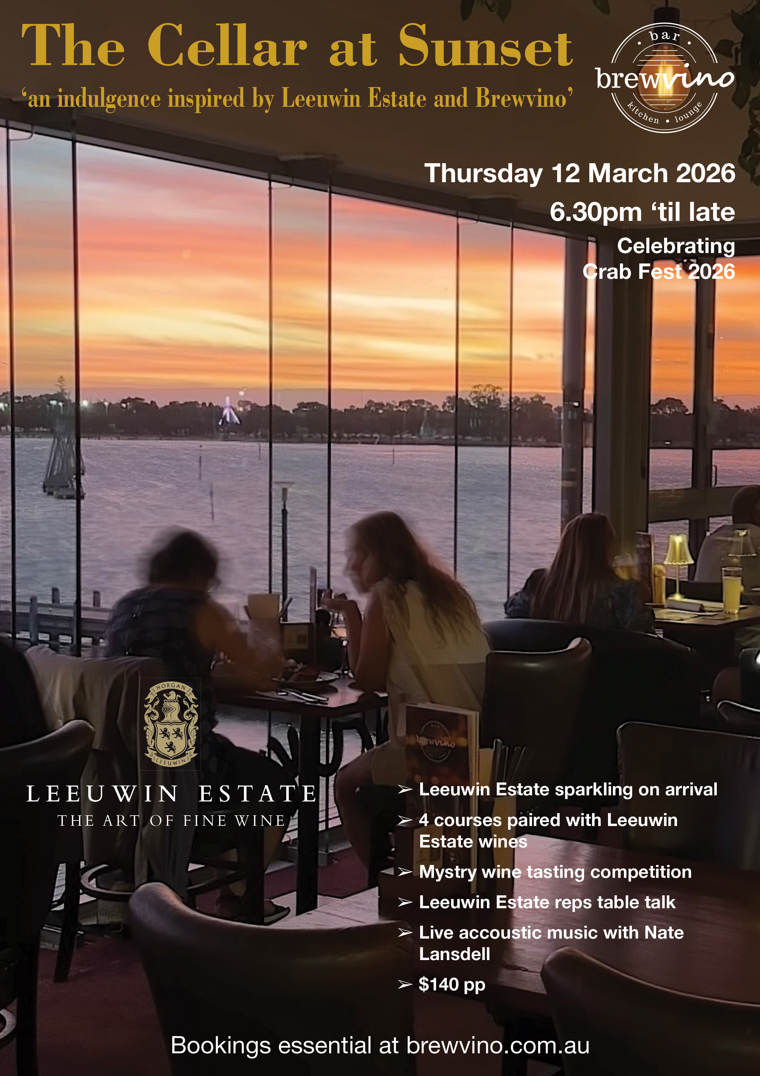 Join us as we celebrate Mandurah crab Fest with this exclusive four course dinner at Brewvino featuring the exquisite wines by Leeuwin Estate.